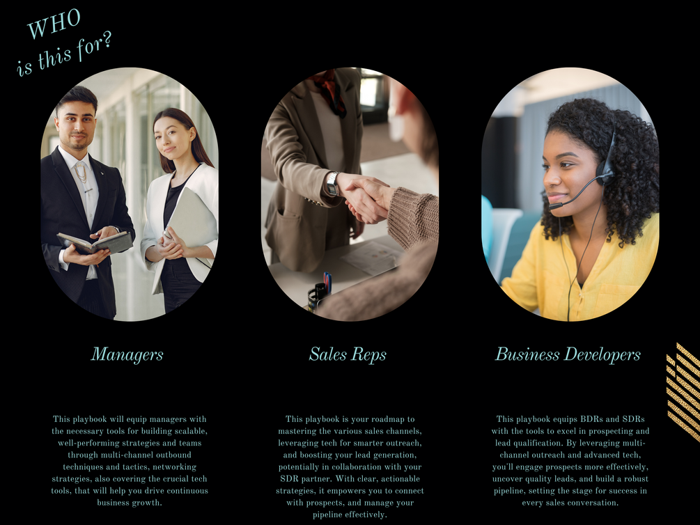 Whether you’re a sales rep just starting out, a seasoned Sales Manager looking to refine your strategies, or a BDR aiming to break into the big leagues, this playbook is for you. It’s designed for professionals with a business mindset who are committed to continuous learning and growth. If you’re driven by results and eager to excel, this playbook will become your go-to resource.