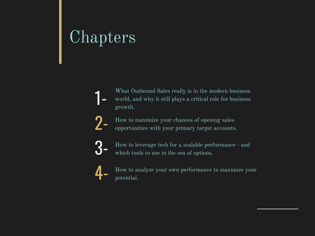 You'll get the e-book to help you master the game of Outbound Sales, a critical element to business success